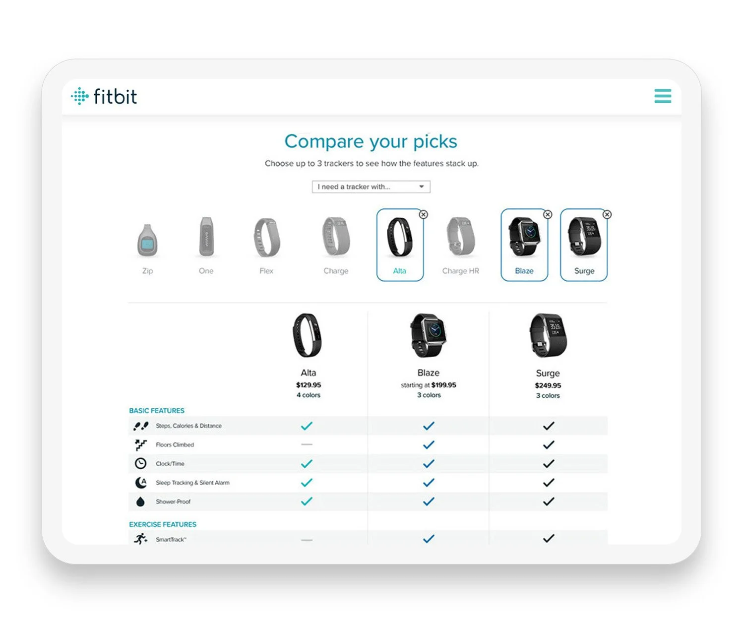 Fitbit, the renowned activity tracker and wearable tech company, had 10 different products and many more accessories to choose from. This meant that shoppers could find it challenging to identify the right product. We wanted to ensure that customers could quickly and easily find the right product for their particular needs.